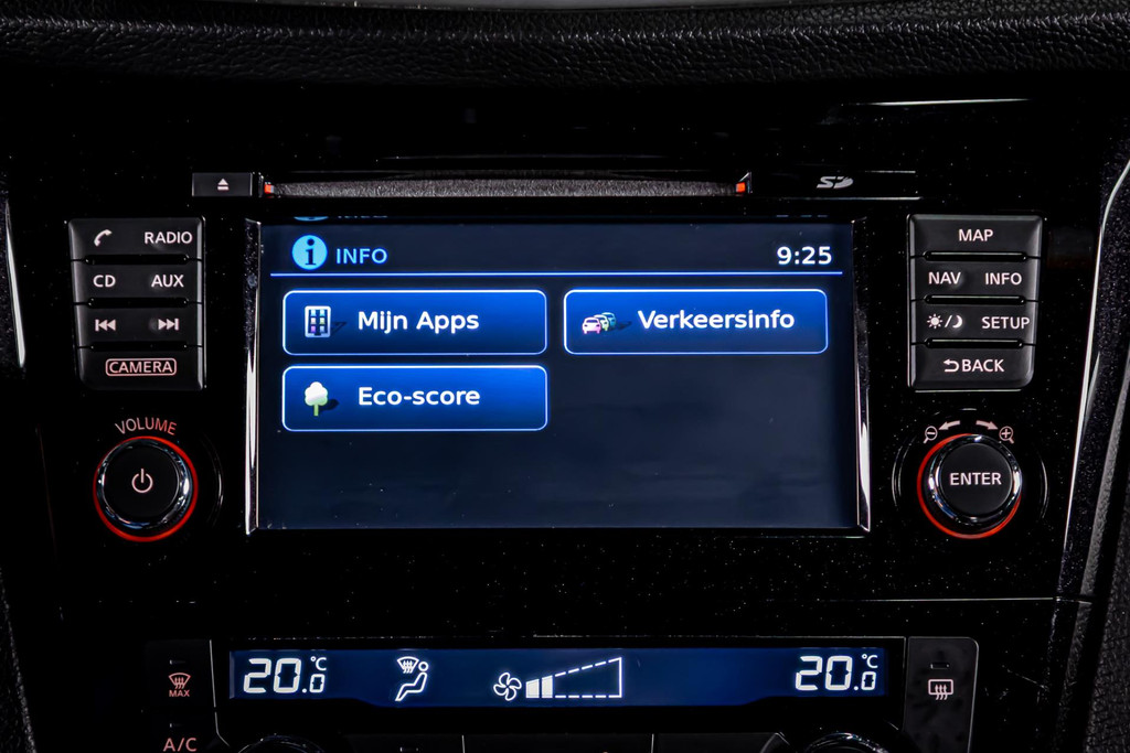 Door het combineren van beelden van vier camera's, biedt de 360 graden camera een naadloos en gedetailleerd beeld van de hele omgeving rondom deze auto. Zuinig, veilig en ontspannen op pad: dat kan dankzij het aanwezige navigatiesysteem. In een auto als deze kunt u niet zonder automatische airconditioning, zodat de temperatuur altijd goed is. Audiovolume aanpassen of wisselen van radiozender: dat gaat makkelijk en veilig met de audiobediening op het stuur. Met de DAB-ontvanger heeft u keuze uit talloze digitale radiozenders met de allerhoogste geluidskwaliteit. De Nissan is standaard voorzien van: regensensor, cruise control, keyless entry, automatisch dimmende binnenspiegel, lederen stuur en lederen versnellingspook.