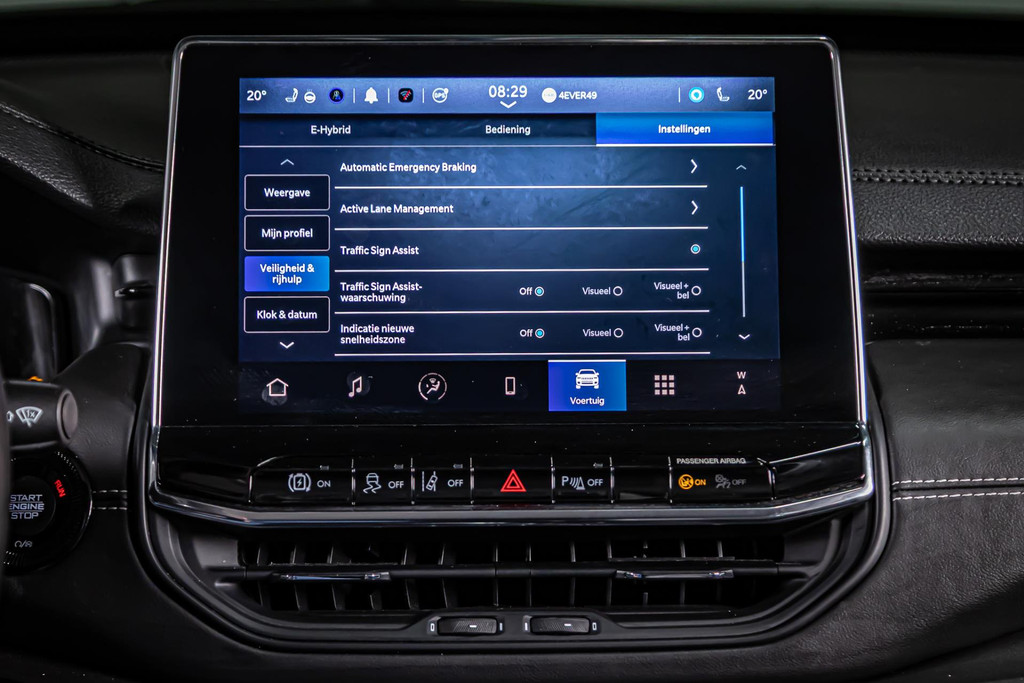 U geniet nog meer van het rijden met uw Jeep omdat u wordt beschermd door intelligente veiligheidssystemen. Verkeersbord-detectie herkent verkeersborden en toont deze op het instrumentarium van de auto. Het Lane-keeping systeem zorgt dat u mooi binnen de lijntjes blijft. Ongemerkt buiten de rijstrook komen is er niet meer bij. Een belangrijke bijdrage aan de veiligheid in deze auto is de vermoeidheidsherkenning, die waarneemt wanneer de bestuurder tekenen van vermoeidheid vertoont. Ook helpen het accident avoidance system, hill hold functie, frontale botsbescherming en bandenspanningcontrolesysteem, uw rit tot een veilige rit te maken.