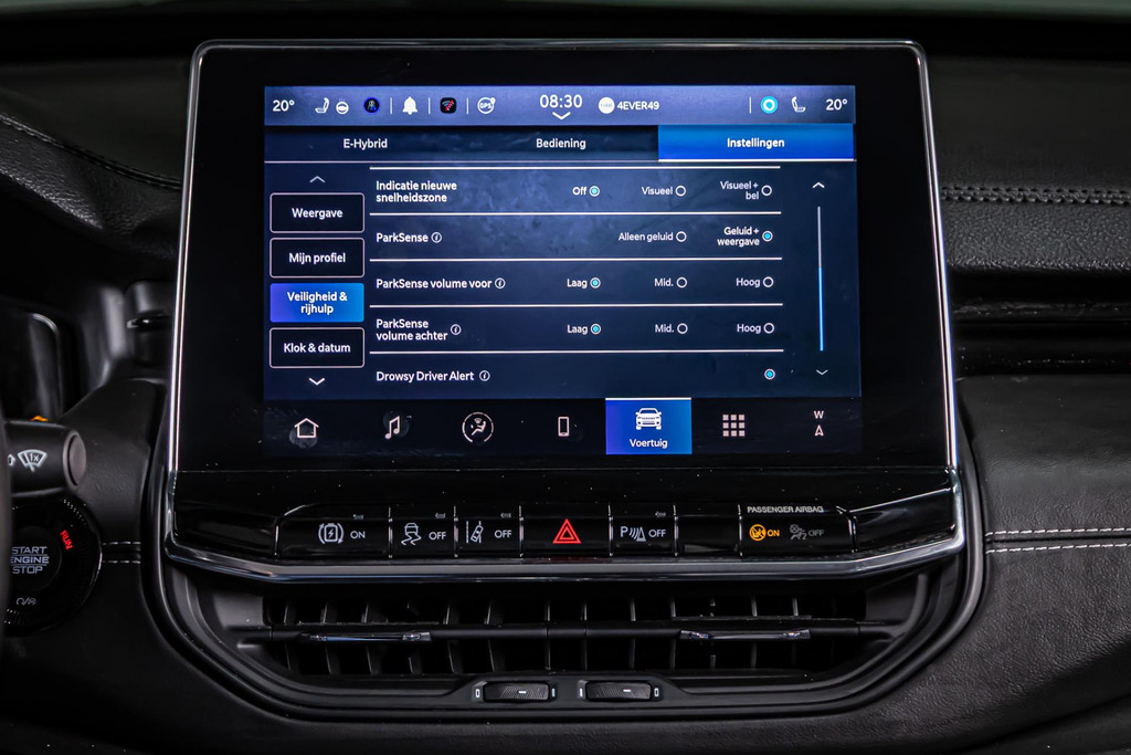 U geniet nog meer van het rijden met uw Jeep omdat u wordt beschermd door intelligente veiligheidssystemen. Verkeersbord-detectie herkent verkeersborden en toont deze op het instrumentarium van de auto. Het Lane-keeping systeem zorgt dat u mooi binnen de lijntjes blijft. Ongemerkt buiten de rijstrook komen is er niet meer bij. Een belangrijke bijdrage aan de veiligheid in deze auto is de vermoeidheidsherkenning, die waarneemt wanneer de bestuurder tekenen van vermoeidheid vertoont. Ook helpen het accident avoidance system, hill hold functie, frontale botsbescherming en bandenspanningcontrolesysteem, uw rit tot een veilige rit te maken.