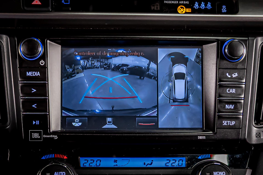 De nieuwste veiligheidssystemen komen in deze Toyota RAV4 samen. Onderweg fungeert de verkeersbord-detectie als het ware als uw bijrijder en attendeert u op de verkeersborden langs de weg. Het Lane-keeping systeem registreert permanent of u binnen de lijnen van de rijstrook blijft; dwaalt u onbedoeld af, dan waarschuwt het systeem en corrigeert de koers. Accident avoidance system is een pre crash systeem. Het systeem helpt u om een dreigende aanrijding te voorkomen. Verder is deze auto uitgerust met dodehoekdetectie, hill hold functie, brake assist en bandenspanningcontrolesysteem.